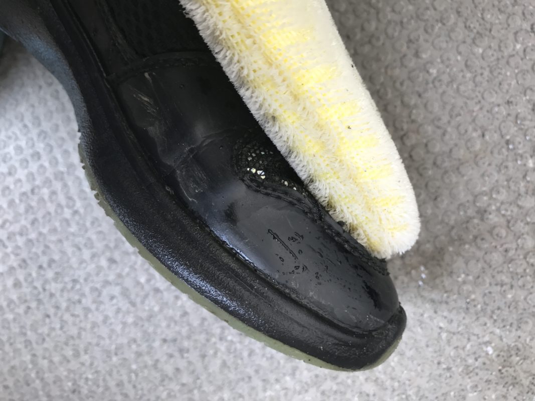 夫の靴なので、今回は石鹸を使って洗っていきます(きっと、汗と脂が染み込んでるはず)。