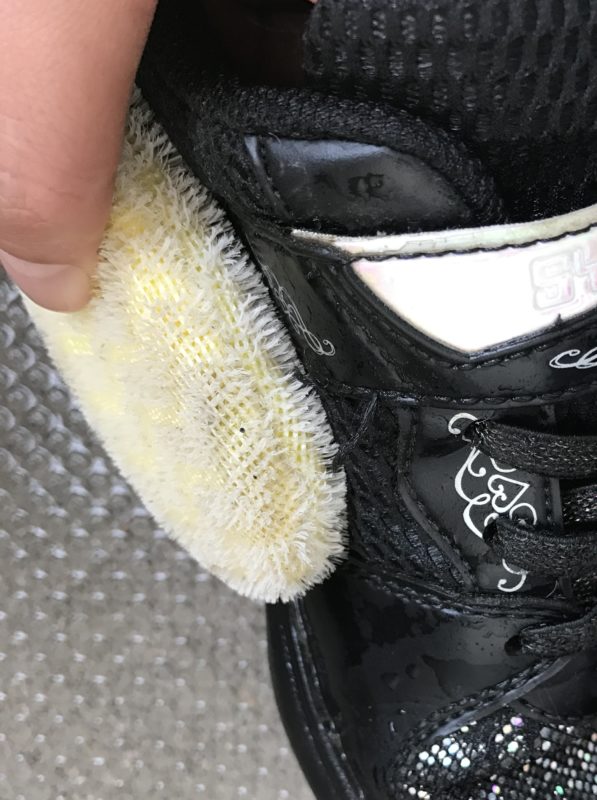 …でも、娘の運動靴はコーティング部分とメッシュ部分があり、ゴシゴシこすると痛みそうな仕様。