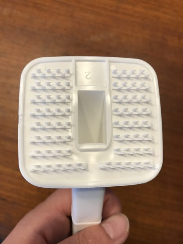 柄の根元には先が丸まったトゲトゲがたくさん。このトゲトゲを裏の白い面に…