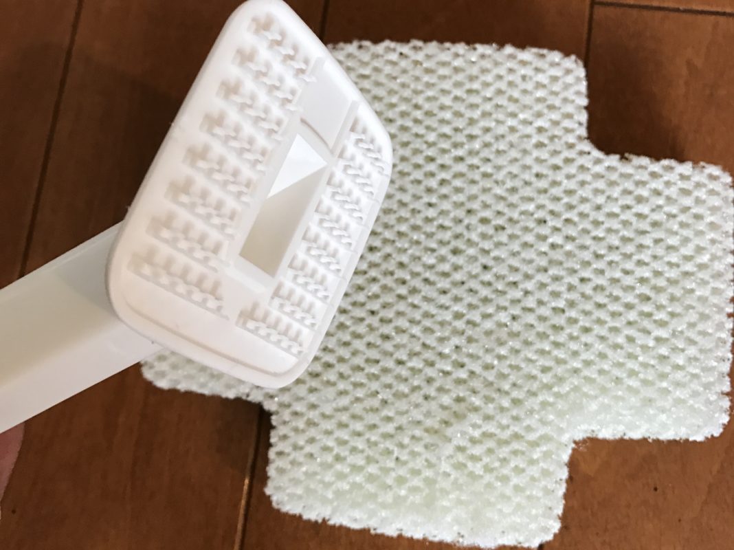 今までは歯ブラシで根気よく落としていましたが(と言っても、ほぼ放置)、このスポンジならラクに掃除できるかも?とチャレーンジ!!