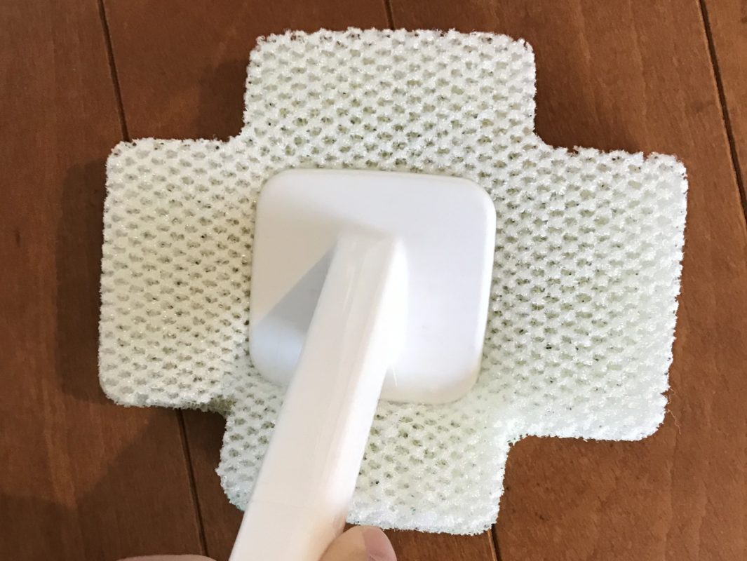 アタッチメント器具がついた掃除グッズって、器具部分が壊れやすかったり、外したいときに固くて外れにくかったりで、私の苦手とするグッズなのですが、これはくっつけるだけの手軽さ。スポンジのみ別売もあるので、スポンジがヘタったら、取り替えて長く使えるのもいいですね!