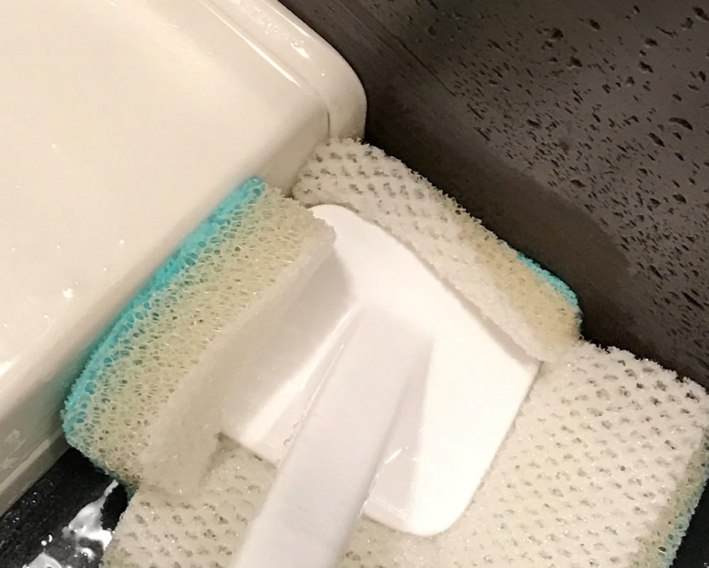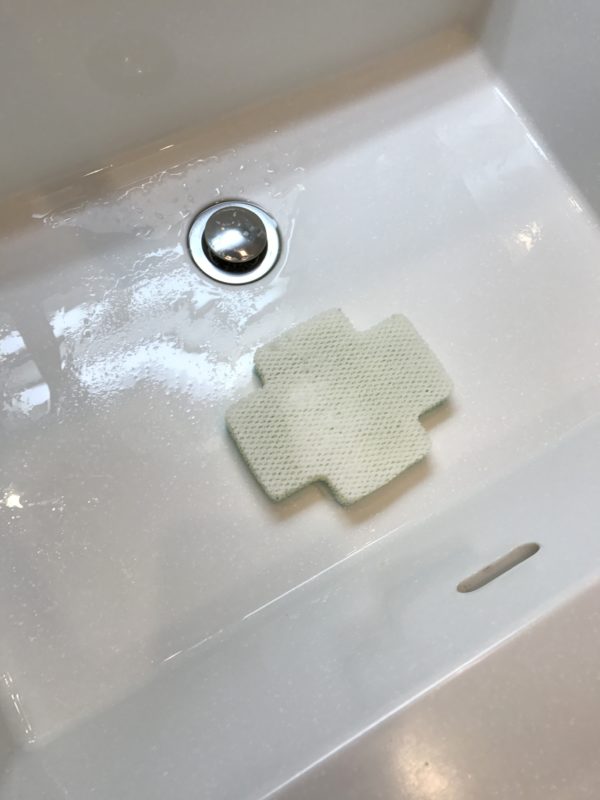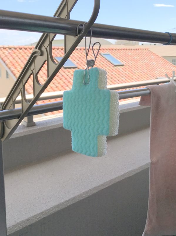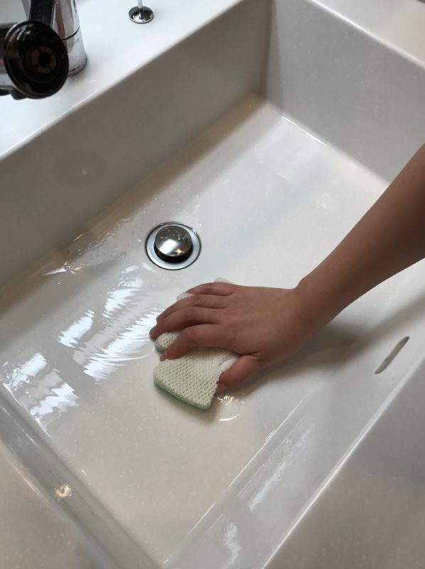使った後のスポンジは、外して洗面所のボウルを掃除した後、水洗いすれば、洗面所もきれいになって一挙両得♪