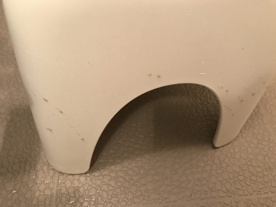 側に置いていたバスチェアに黒い水が…たぶんカビ水…ギャーーー(涙)。