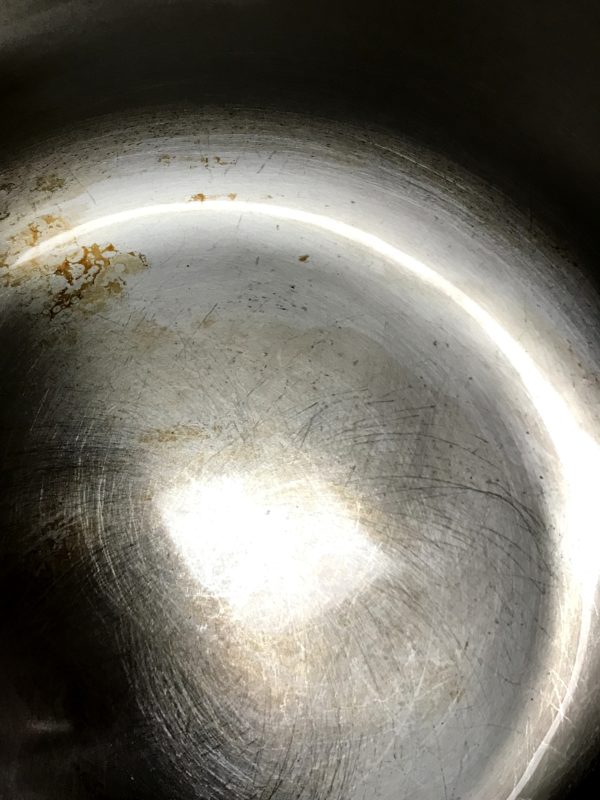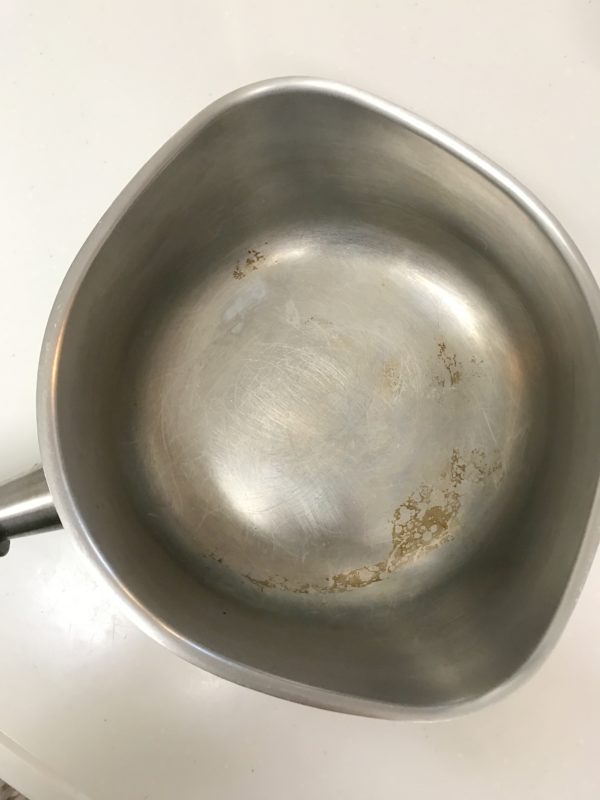 取り出したるは中ぐらいの手つき鍋。煮物などに重宝しているのですが、焦げ付きやすいのが悩みの種。