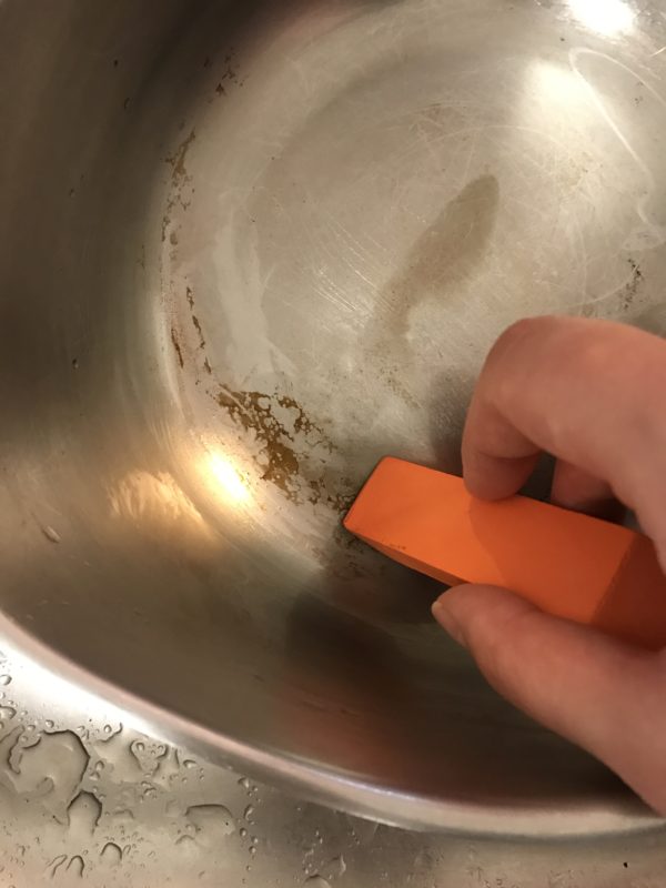 この『消しゴムクリーナー』は鍋の焦げ付きにもばっちり利くんだとか。