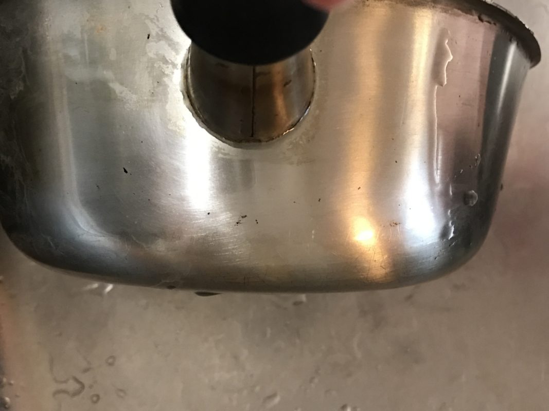 きれいになっている所と汚れが沈着している所の間に、うっすらと線が浮き上がっています。