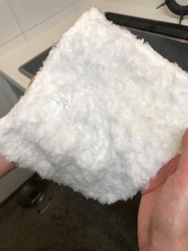 開けてみれば、白く輝くふわふわのふきんが登場!