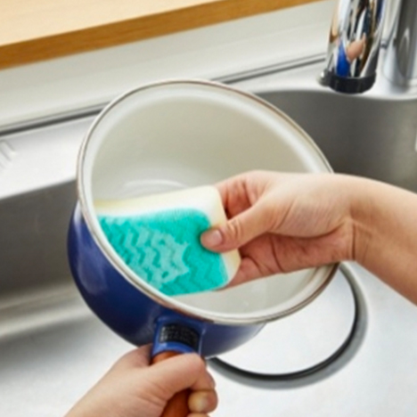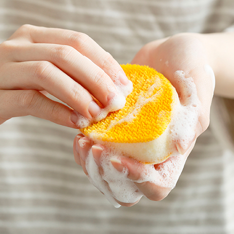 POINT-03少しの力で傷をつけずにきれいに。圧縮技術をスポンジに応用