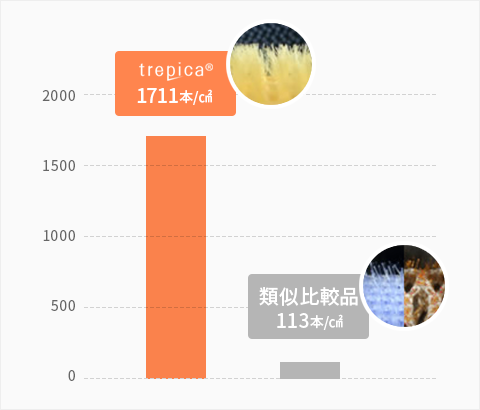 トレピカは、繊維が細いだけでなく、単繊維密度が1711 本/㎡と