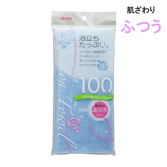 泡立ちがよくさっぱりとした洗いごこちのナイロンタオルです。