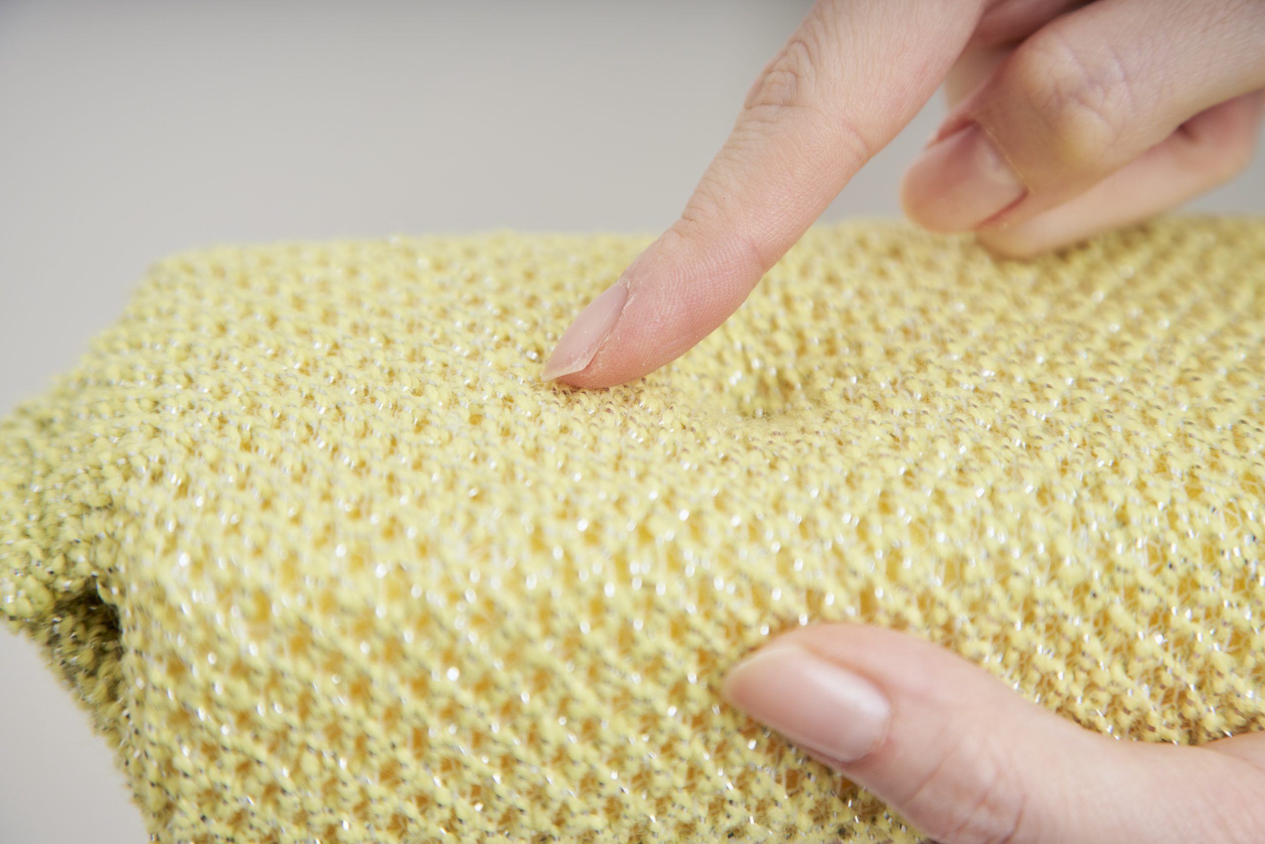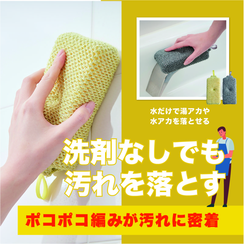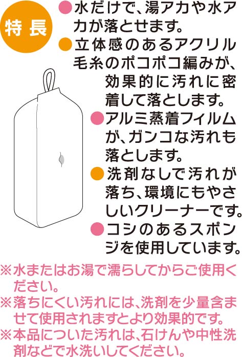 立体感のあるアクリル毛糸のポコポコ編みが効果的に汚れに密着して落とします。