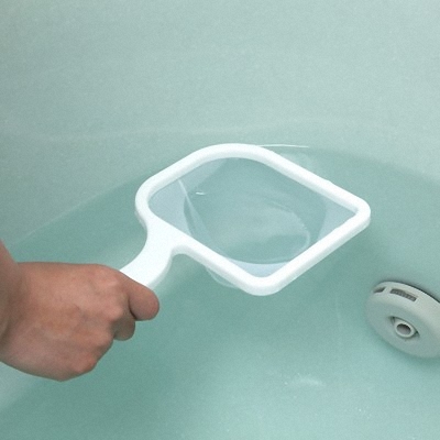 コーナーに浴槽内に浮遊している湯アカ・髪の毛を追いつめてすくいやすいアール形状。