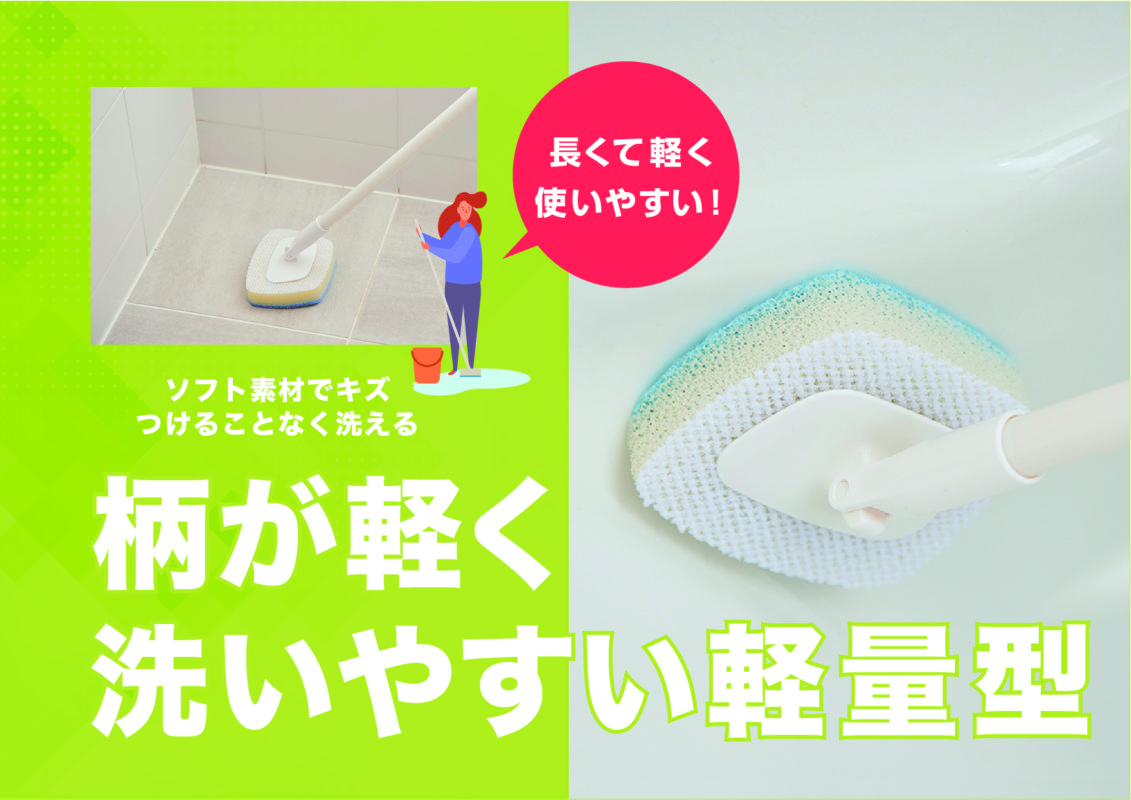本体がとても軽く浴槽はもちろん浴室の床・壁などもラクラク洗え。
