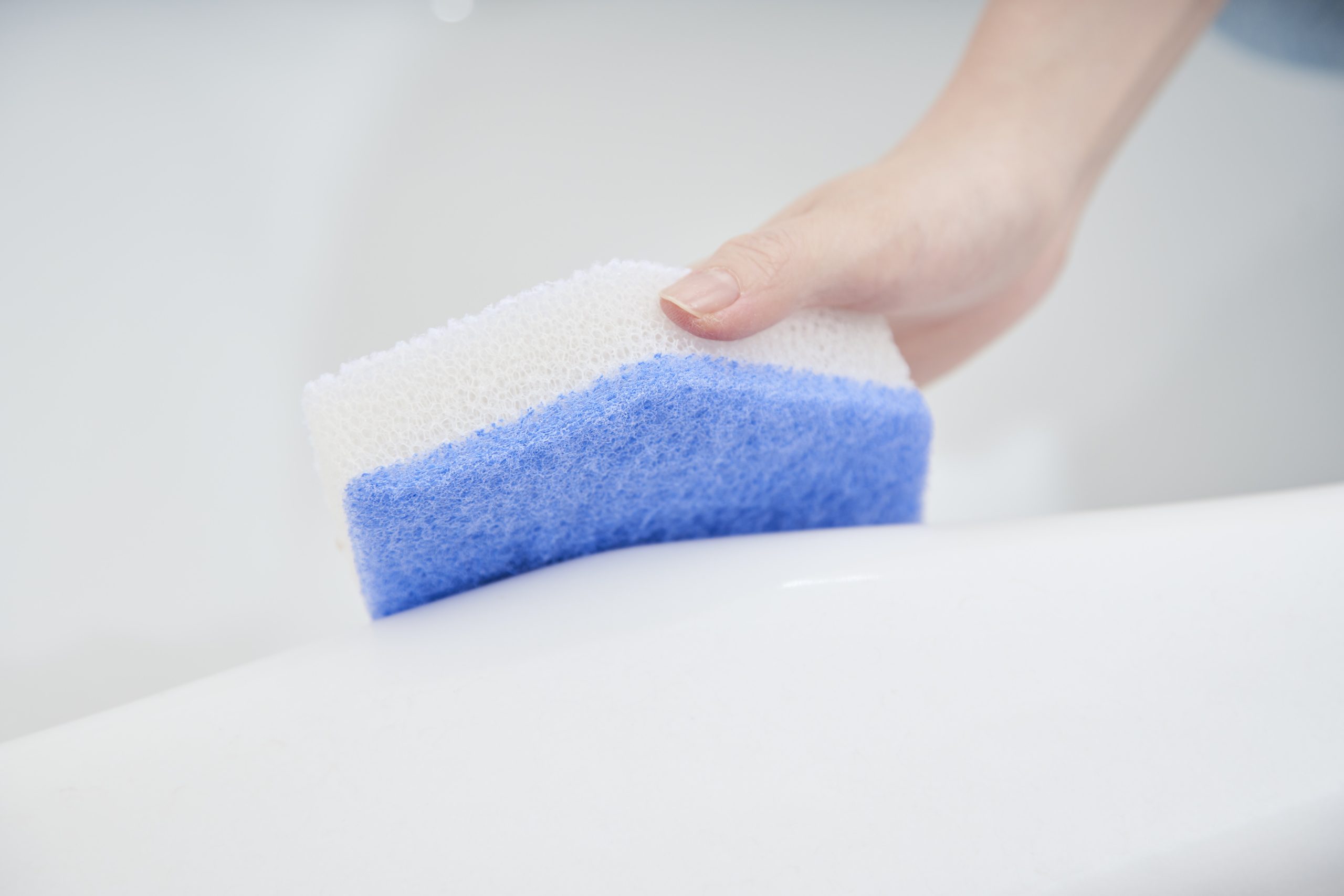 キズをつけにくい特殊粒子加工の不織布でザラつきやヌメリをスッキリ落とします。