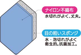 水切れの良い粗目のスポンジで、泡だちと水切れがよく、早く乾いて衛生的です。