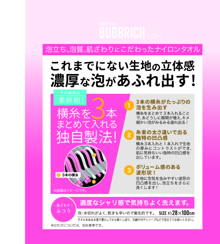 ・泡立ち、泡質、肌触りにこだわったナイロンタオル。