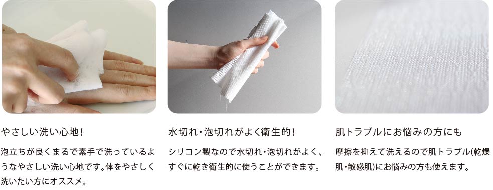 まるで素手で洗っているかのようなやさしい洗い心地。