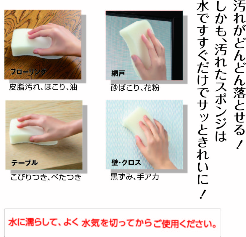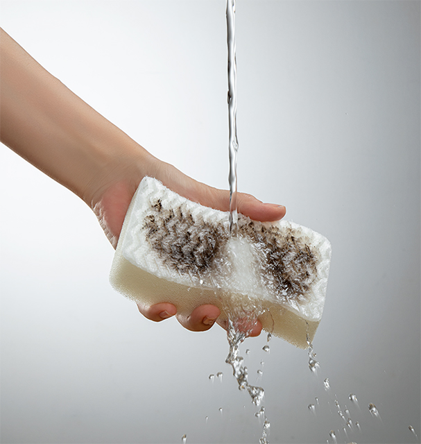 スポンジに付いた汚れは、水ですすぐだけで簡単に落ちます。