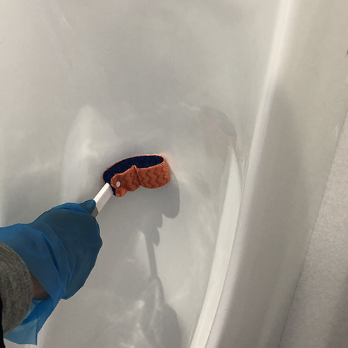 フッ素ガード効果による防汚加工で、清掃作業を省力化、作業者の身体負荷軽減、作業時間短縮。