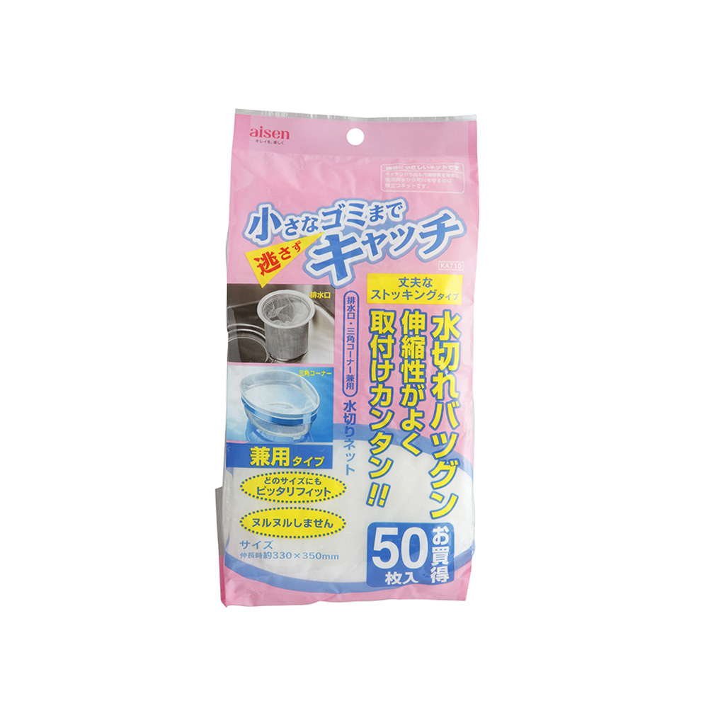 伸長時:約33cmx35cm 排水口・三角コーナー兼用水切りネット。水切れ抜群で、伸縮性がよく取付け簡単。