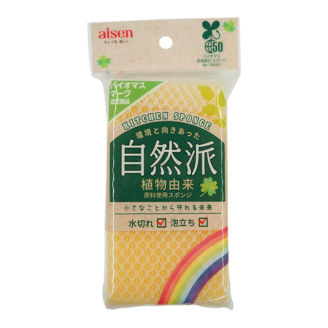 スポンジ部分に植物由来原料を50%以上配合しバイオマスマークの認定を受けたキッチンスポンジです。