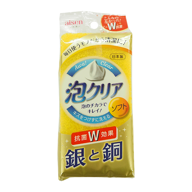 銀と銅のW抗菌により菌の増殖を抑制し、清潔さを保つスポンジです。