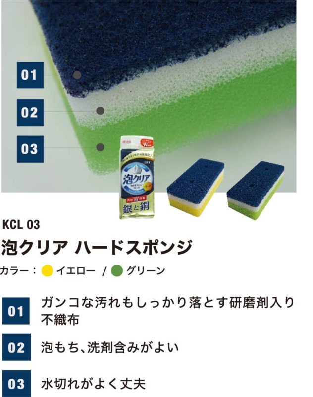 泡立ち・水切れ等キッチンスポンジに求められる様々なニーズにこたえる万能型のスポンジとなっています。