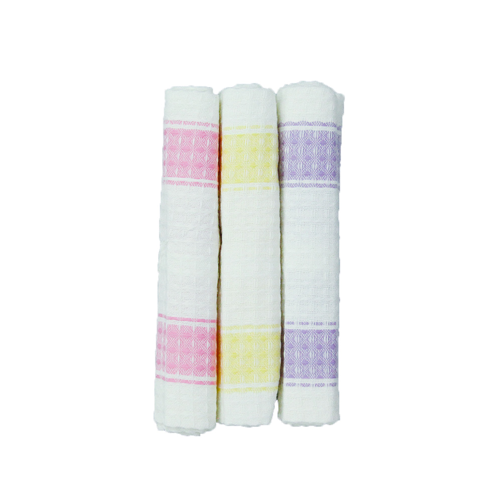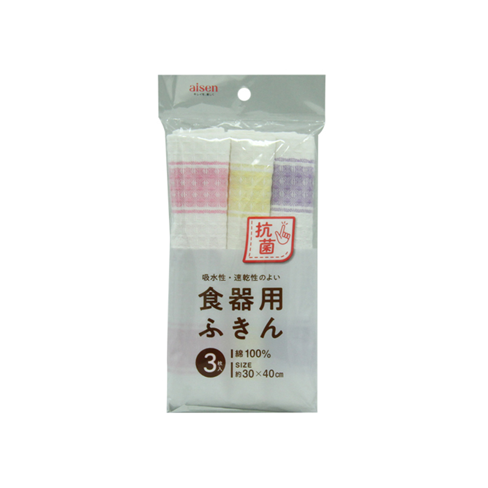 凹凸のあるワッフル織りでケバも立ちにくく、やわらかい風合なので食器用に適しています。
