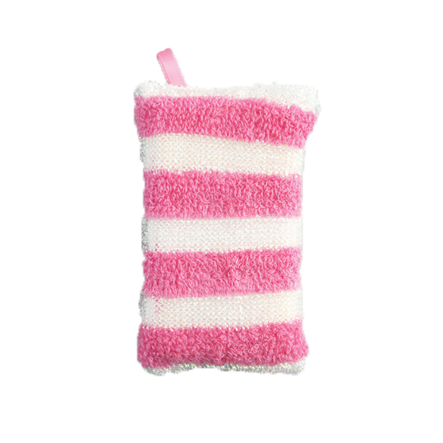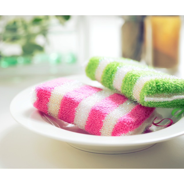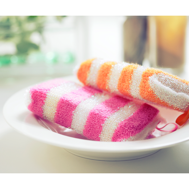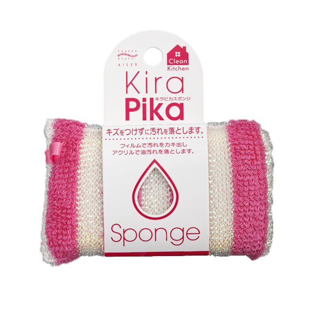 キズをつけずに汚れを落とす、手になじむサイズのネットスポンジです。立体パイルのキラキラフィルムが軽い力で汚れをカキ落とし、アクリル部分では油汚れをしっかり落とします。