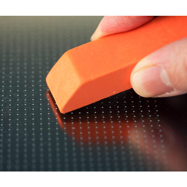 • 研磨材の入った消しゴムでIH・ガラストッププレートの焼きつき・こびりつき汚れを落とします。