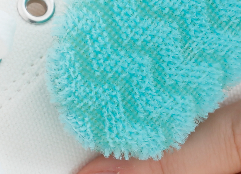 髪の毛より細い0.045㎜の繊維がブラシ状になっていて、生地のすきまに入り込み汚れをかき出します。