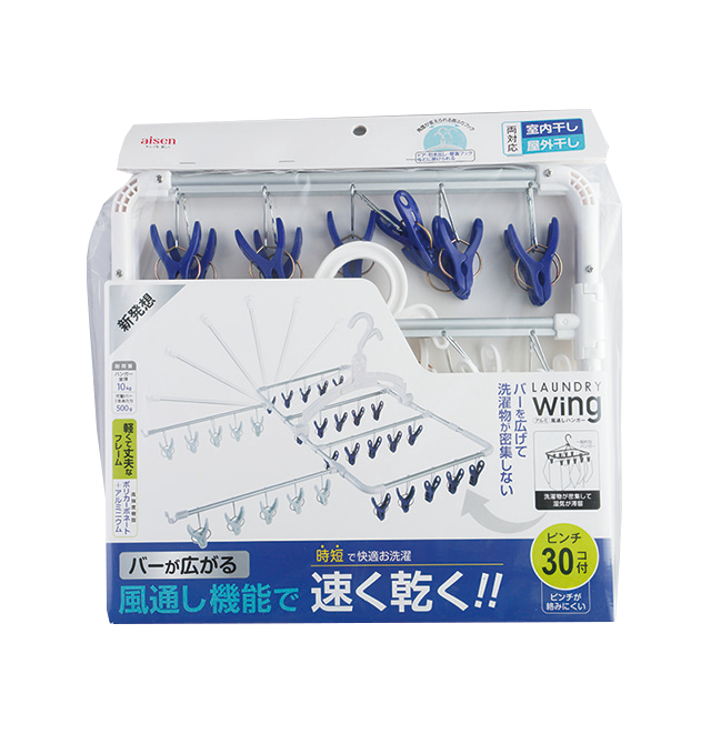 - バーを広げることで、洗濯物が密集せず、風が通り速く乾きます。